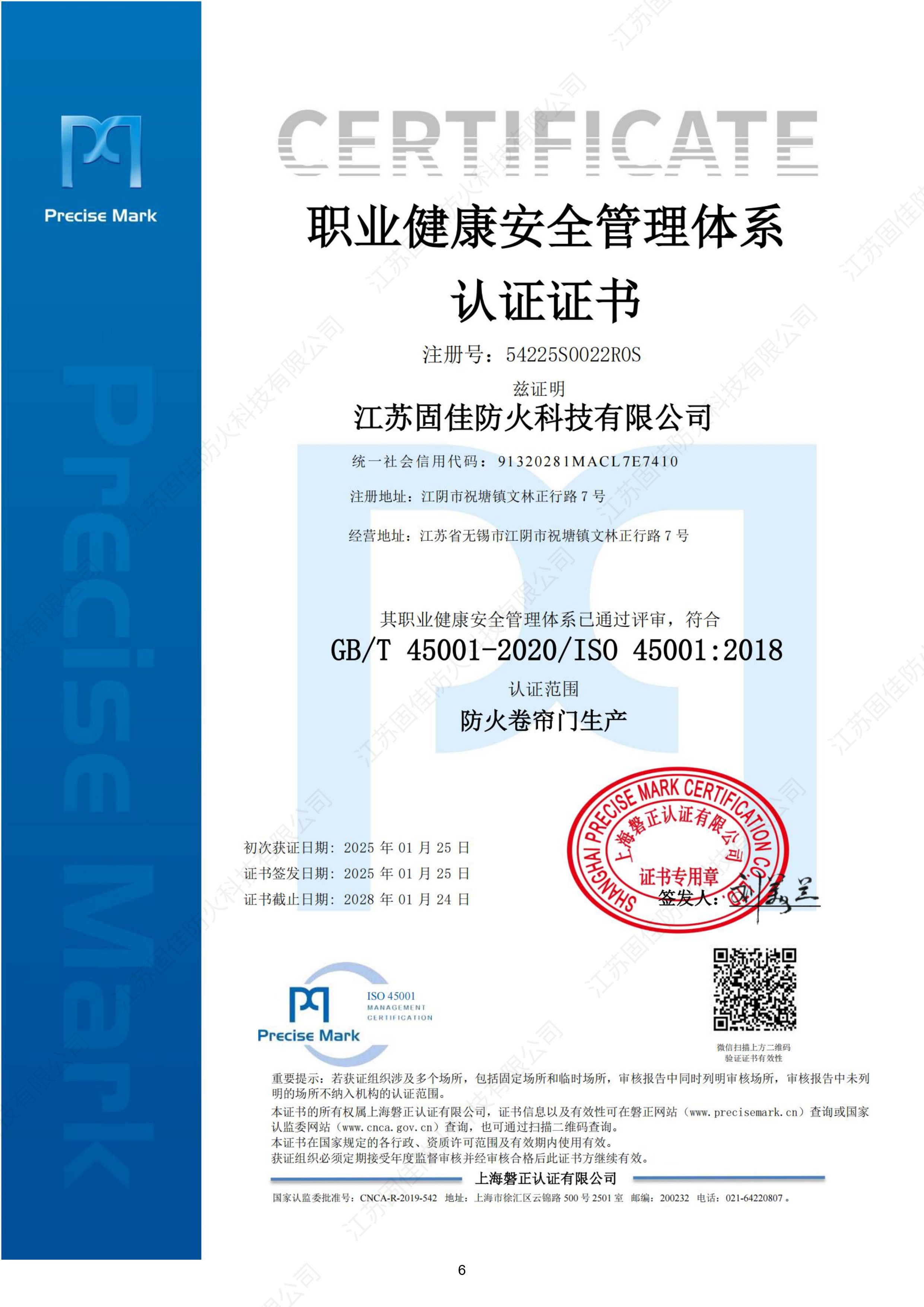 江苏固佳科技有限公司是国家消防部门批准认可的消防产品专业生产型企业,产品配套齐全,技术先进,属江苏省内特级防火卷帘生产基地,凭借先进的技术、卓越的品质、科学 的管理、完善的服务取得快速发展。主导产品有:生产批发特级无机布基、双轨双帘无机特级防火卷帘;钢质复合防火防烟卷帘门;无机纤维折叠提升式特级防火卷帘;单轨单帘防火防烟卷帘;活动式固定式挡烟垂壁;防火 卷帘用卷门机系列。